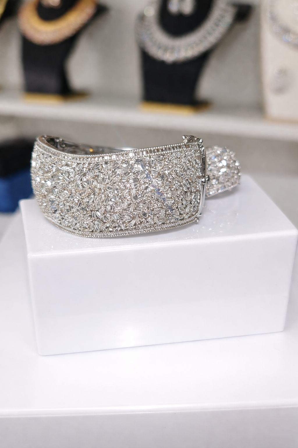 Luxury Baguette & Round Diamond Cluster Bracelet – Wide White Gold Statement Cuff