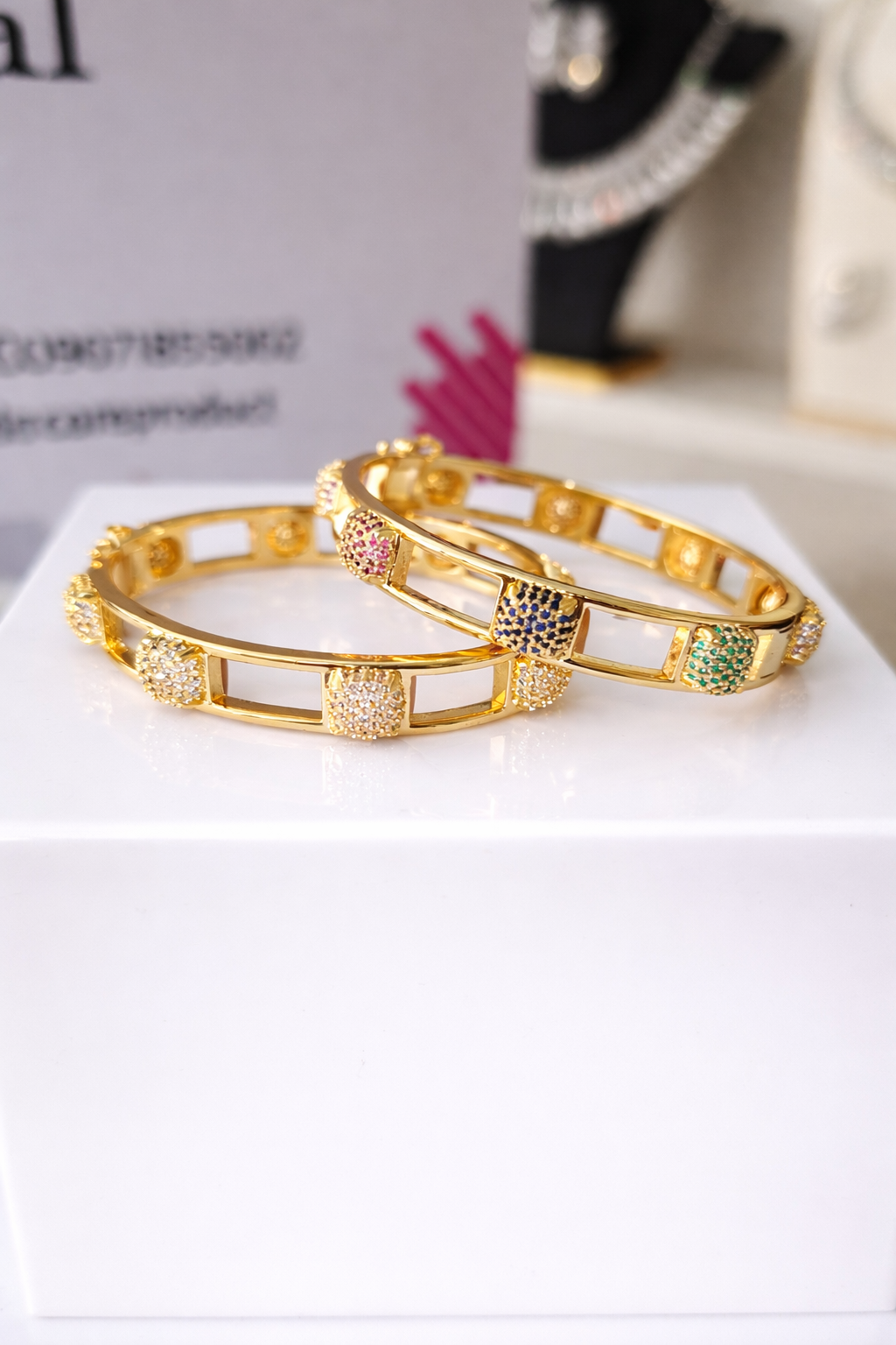 Gold Open Link Pave Crystal Station Bangle – Multicolor Stone Luxury Stackable Bracelet - Note: Price tag is for one