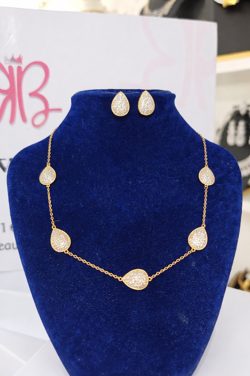 Luxury Gold Teardrop CZ Necklace Set – Elegant Women’s Crystal Pendant & Earrings Set