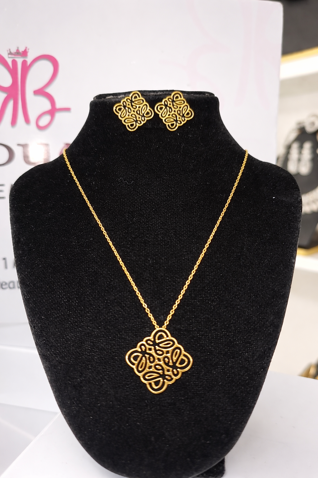 Elegant Gold Filigree Pendant Necklace Set – Women’s Lightweight Statement Jewelry with Matching Earrings