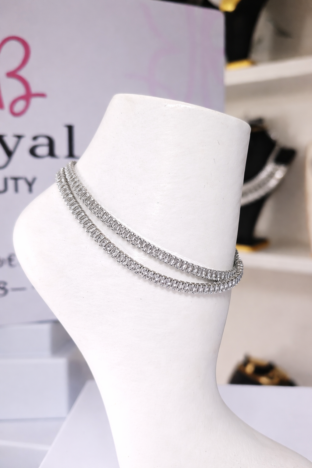 Silver Double Row Tennis Anklet with Cubic Zirconia